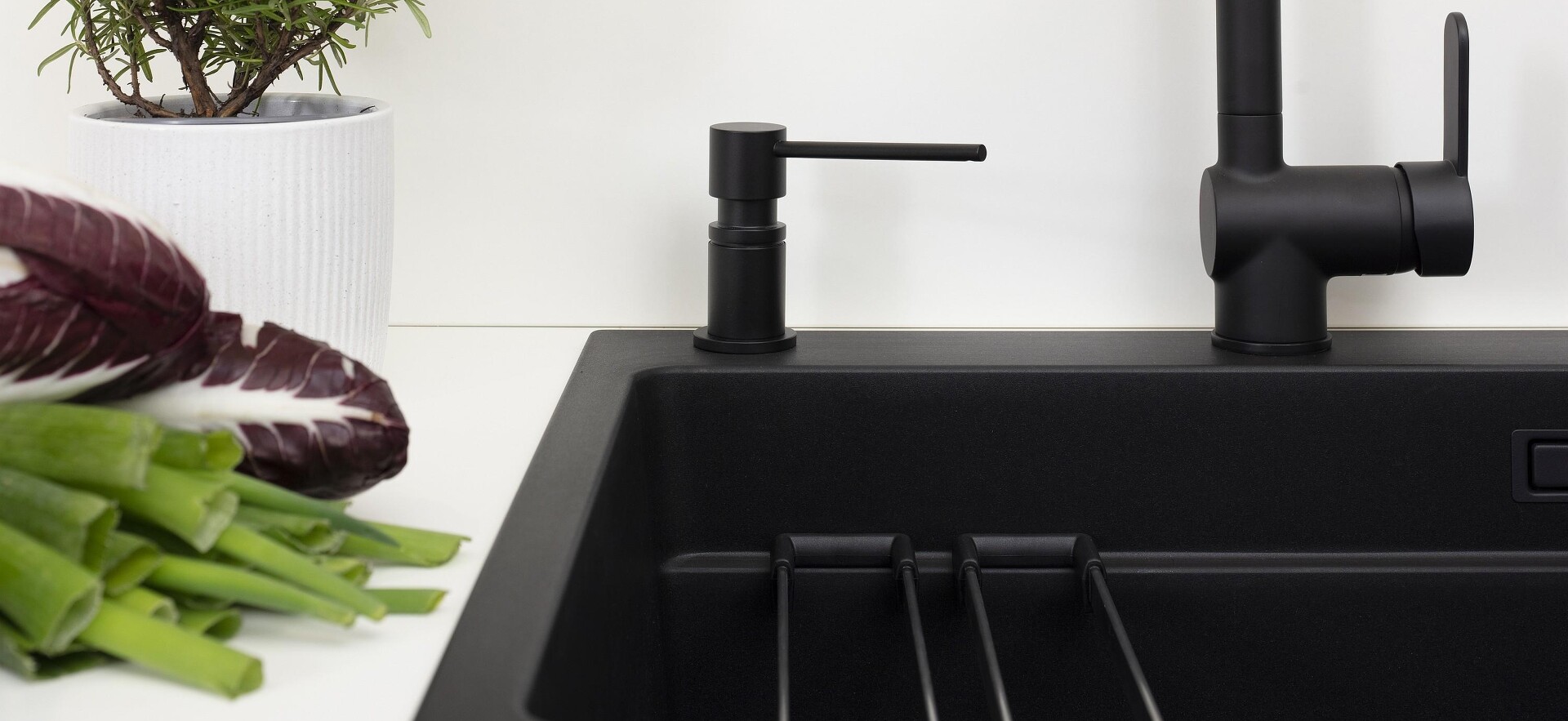 Von daher ist es mehr als praktisch, den Spender fest im Spülbecken installiert zu haben. So arettiert ist das Spülmittel immer griffbereit, kann nicht umfallen und auch keine Ränder hinterlassen. Einige moderne Spülbecken kommen dafür mit drei Bohrlöchern aus der Fertigung: Ein Loch für die Armatur, eines für die Exzenter-bzw. Abflussverschluss-Steuerung und ein drittes Loch für den Seifenspender. Es gibt aber auch andere Lösungen. Fragen Sie uns!